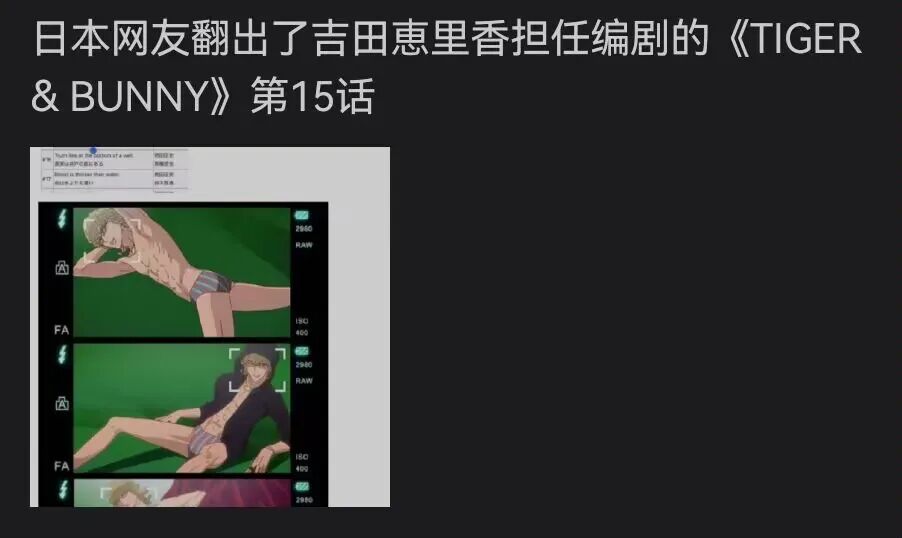 最后,还有日本网友翻出了吉田惠里香以往担任编剧的动画作品,但这部作品里充斥着大量的“福利镜头”,也就是她口中所谓的“杂音”,只不过是男性福利就是了......