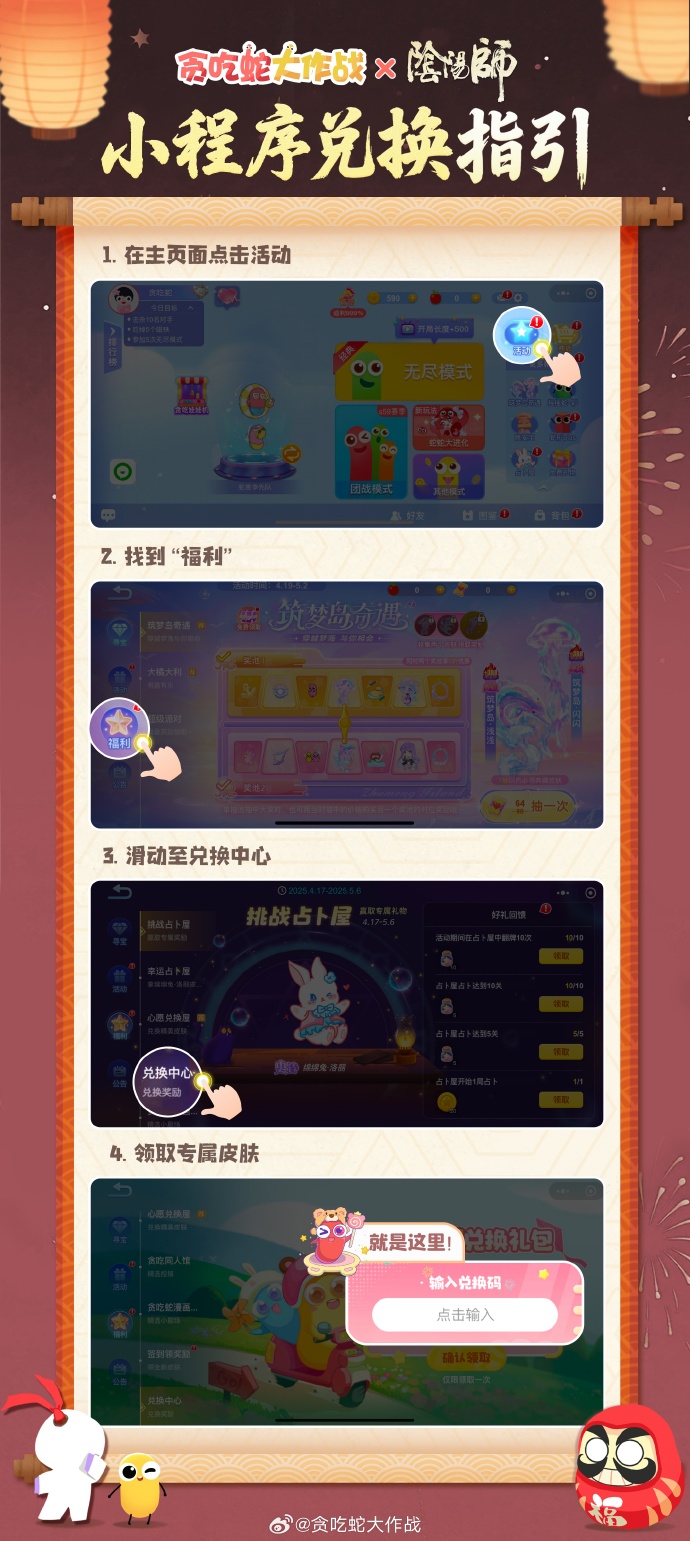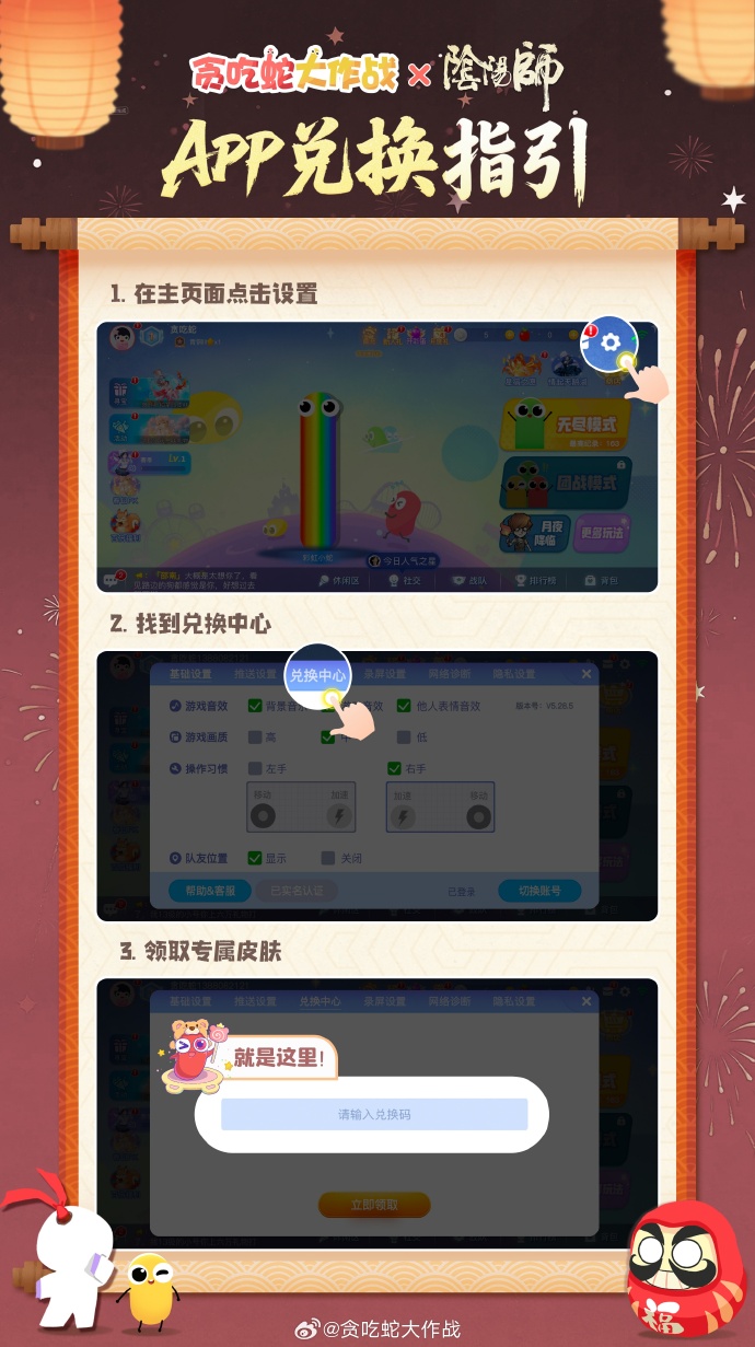 贪吃蛇大作战和阴阳师联动,这次可以通过使用联动兑换码兑换好看的联动皮肤哦,很多小伙伴想知道贪吃蛇大作战阴阳师联动兑换码是什么吧,现在就和小编一起来看看贪吃蛇大作战阴阳师联动兑换码吧。