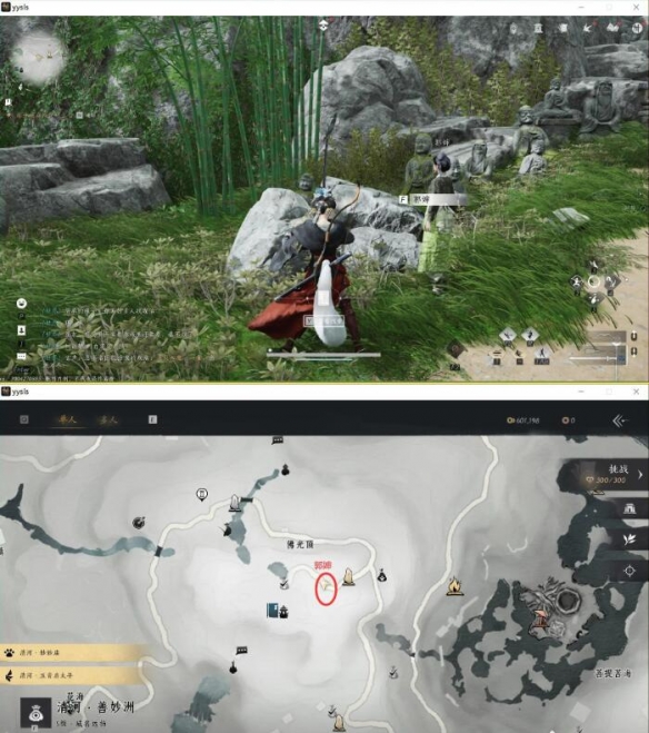 1、首先我们需要前往佛光顶和郭婶进行对话,位置如下图所示;