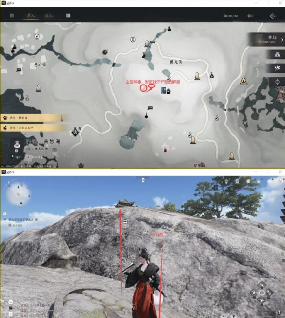 2、然后我们前往山顶神龛,在那附近找到千斤坠进行解谜,获得绣着祟字的奇怪钱袋;
