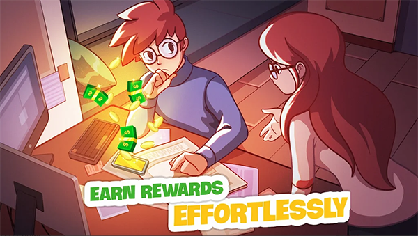辛勤工作一天后,在小游戏中愉快地观看金钱雨