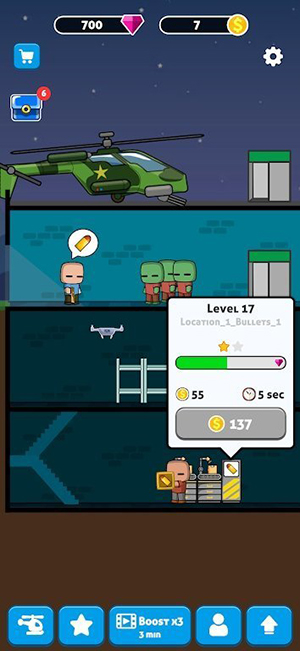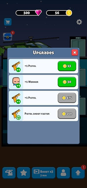 僵尸射击闲置枪支工厂是一款僵尸末日放置策略游戏,组建属于你的精英小队,清除城市中的僵尸,拯救尽可能多的人。尝试城市工人和僵尸,合理管理并享受自动化流程,将僵尸从建筑物中清除出去。