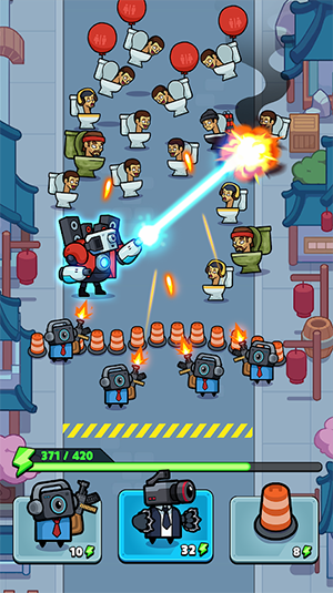 一款以马桶人怪物为主题的城市防御战斗模拟游戏,建立属于你的警察小队,抵挡马桶人僵尸并赢得生存战争的胜利。