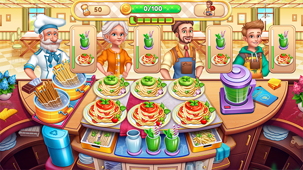 令人上瘾的时间管理游戏,在多家餐厅烹饪,配合使用特殊的推动器,成为高超大厨
