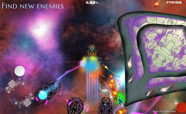 罗马2077太空漫游行动是一款太空飞行战争策略游戏,从24艘具有不同特性的基地飞船中选择控制一艘太空飞船,选择不同武器,参与太空战争,面对强大的boss和不同敌人,通过点击来向敌人发射武器,击败敌人并赢得战争的胜利。