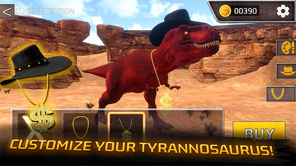 使用不同的可解锁物品自定义您的霸王龙,成为酷炫的恐龙之王