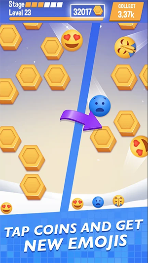升级笑脸和所有其他喜欢的表情符号,在世界各地弹跳并收集硬币