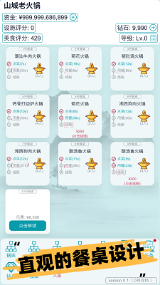 经营火锅店是一款模拟经营游戏!在游戏中玩家扮演一个火锅店老板!去规划和发展火锅店的规模~解锁海量的火锅和菜谱~~~~欢迎大家关注体验哦。