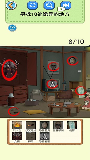 找出恐怖之处是一款休闲益智找茬闯关游戏,感受充满乐趣的脑洞找茬玩法,找出场景中所有细思恐极的地方,你能够在其中不断找茬,解开更多谜题,进入到找出恐怖之处的游戏中轻松开始尝试。