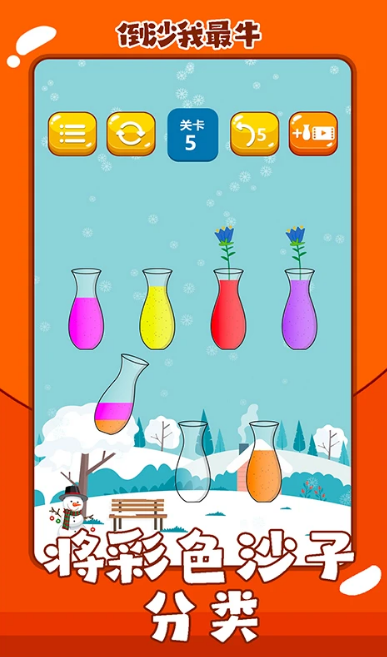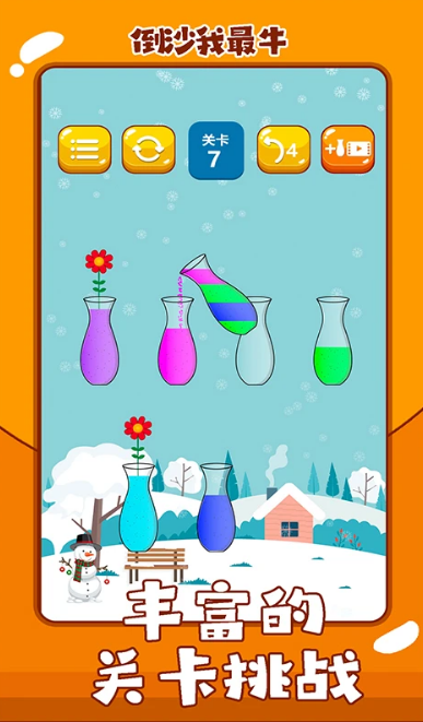 倒沙我最牛是一款休闲益智类型的游戏,有趣且令人上瘾的益智游戏!尝试将花盆中的彩色沙子分类,直到所有颜色都在同一个花盆中。一个具有挑战性且令人放松的游戏,可以锻炼您的大脑!